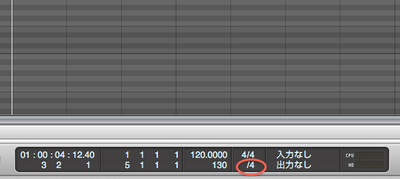 コントロールパネルの音符の長さを変えるところをクリックして